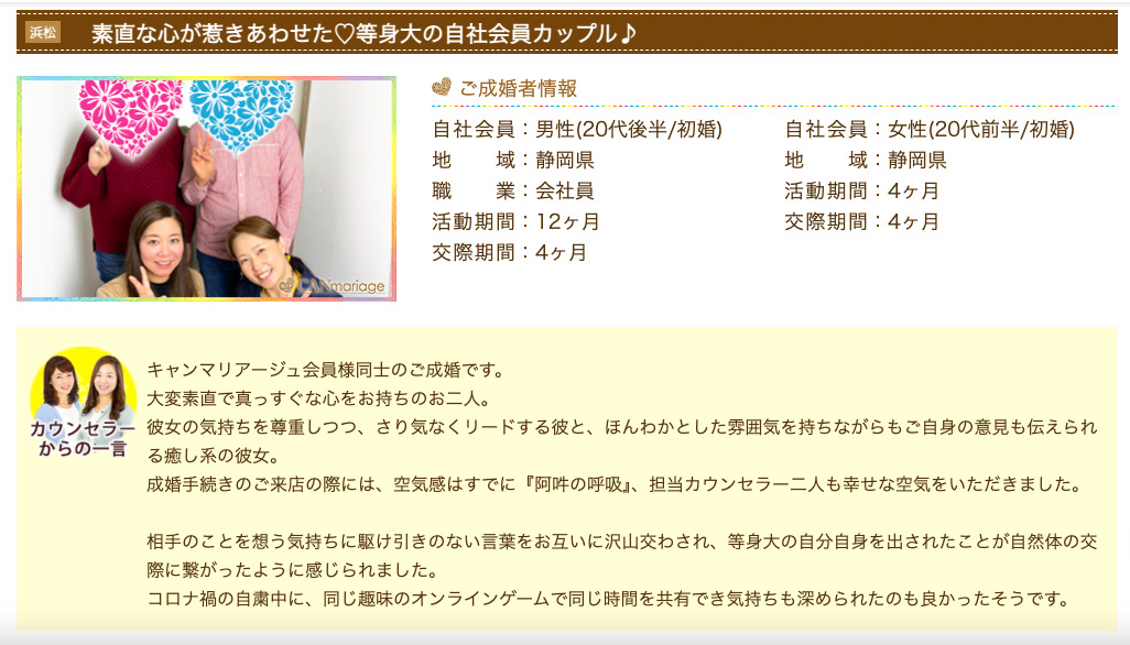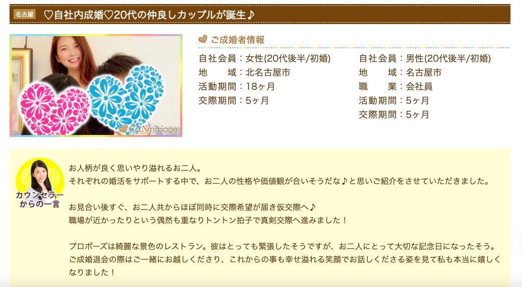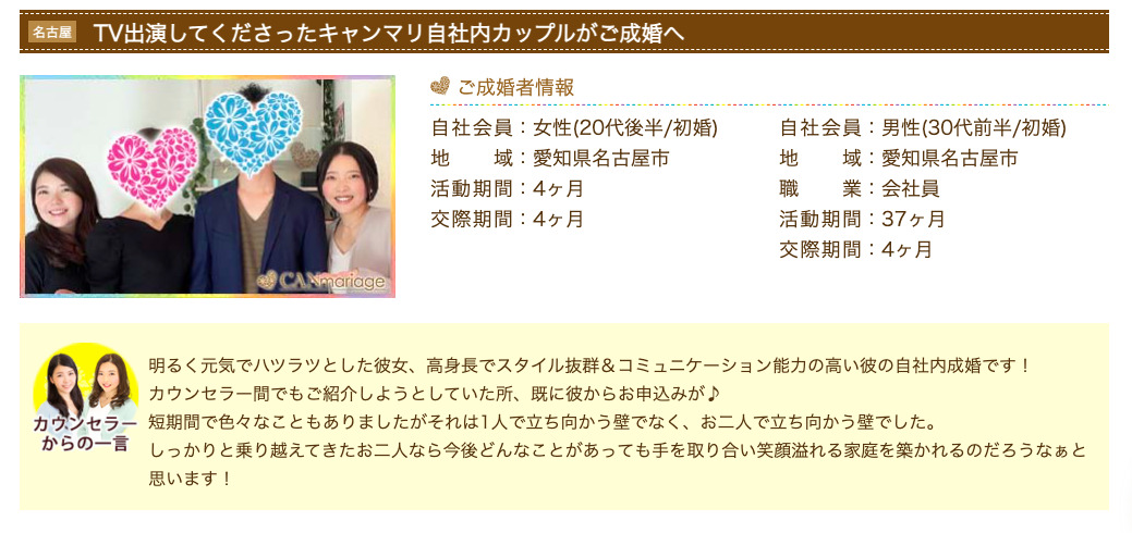 また、キャンマリアージュの特徴は、成婚実績にもあります。